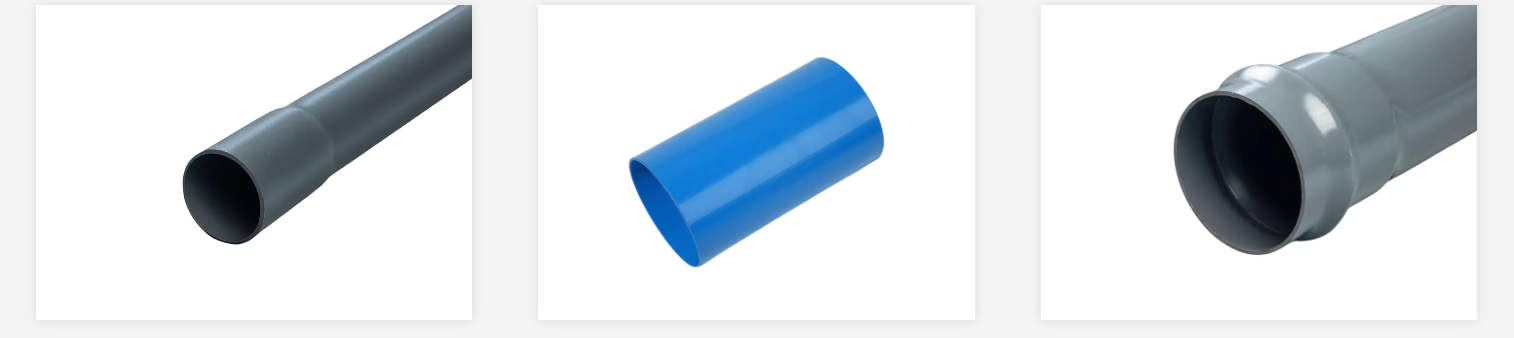 PVC-U pipe: Unplasticized polyvinyl chloride pipe, the most common type, mainly used in drainage systems and electrical conduits.